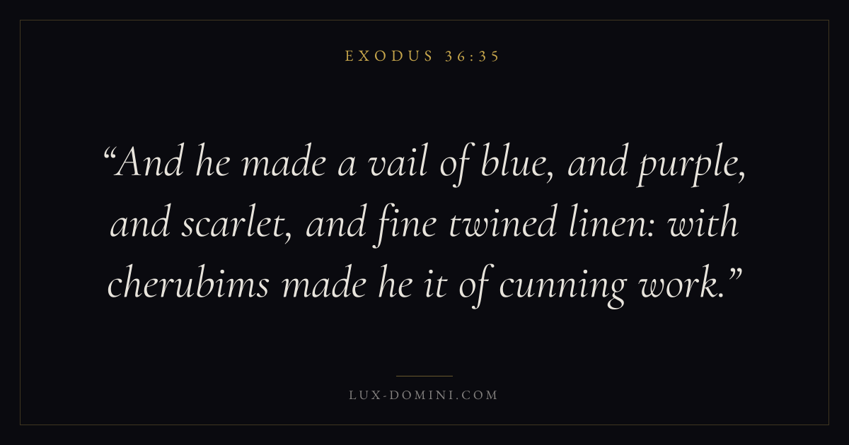 And he made a vail of blue, and purple, and scarlet, and fine twined linen: with cherubims made he it of cunning work.