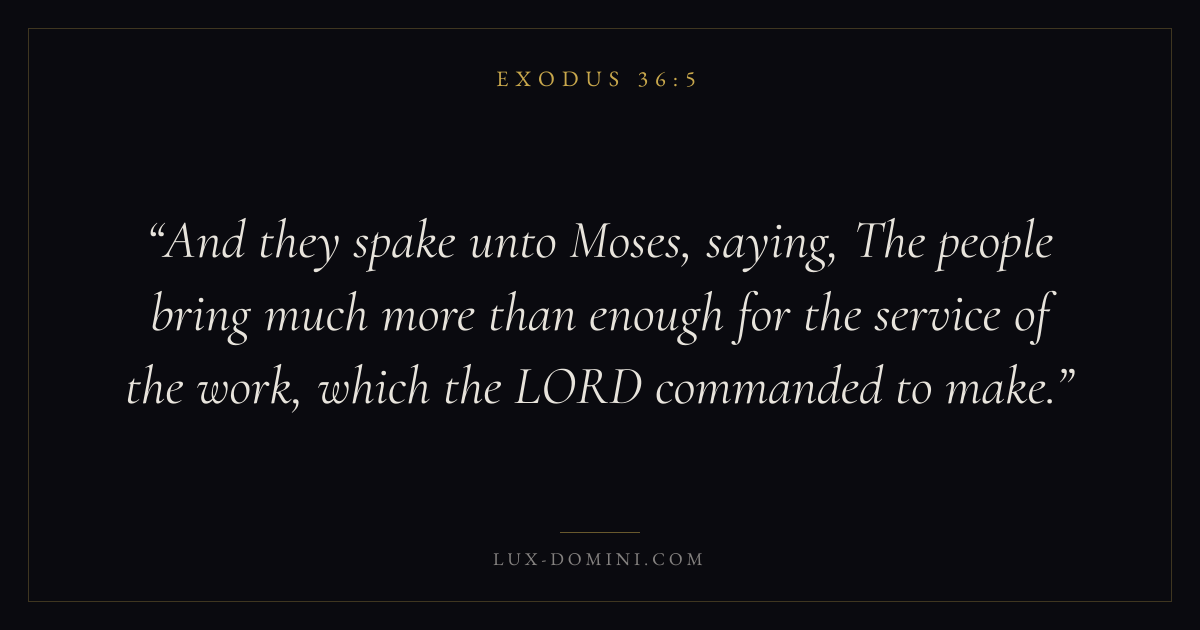 And they spake unto Moses, saying, The people bring much more than enough for the service of the work, which the LORD commanded to make.