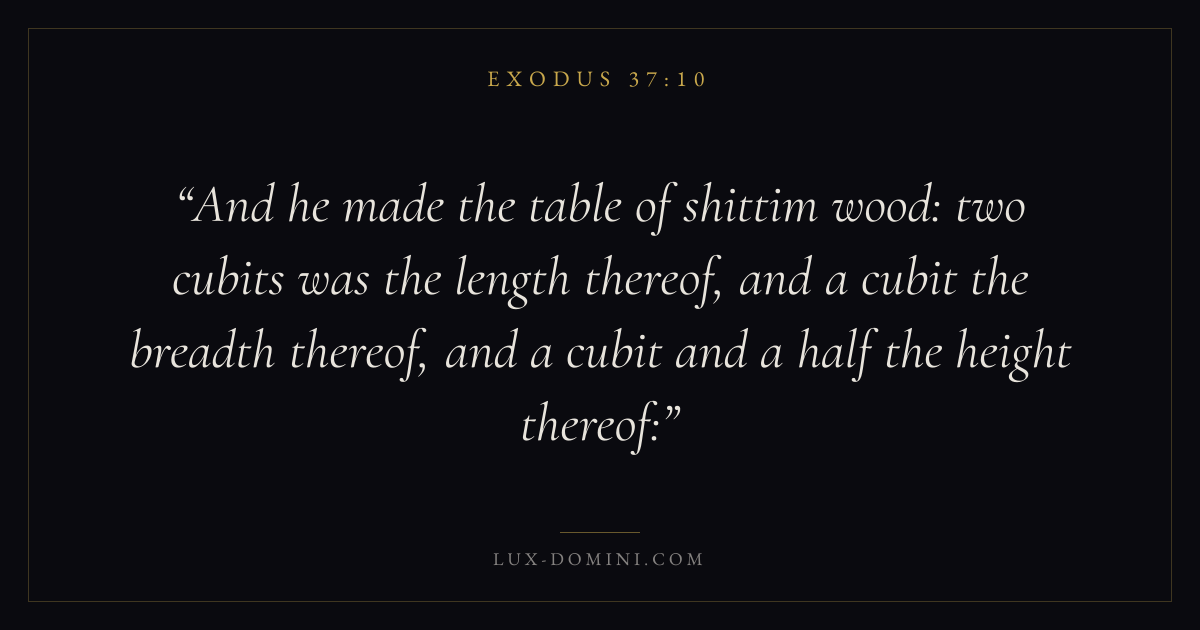 And he made the table of shittim wood: two cubits was the length thereof, and a cubit the breadth thereof, and a cubit and a half the height thereof:
