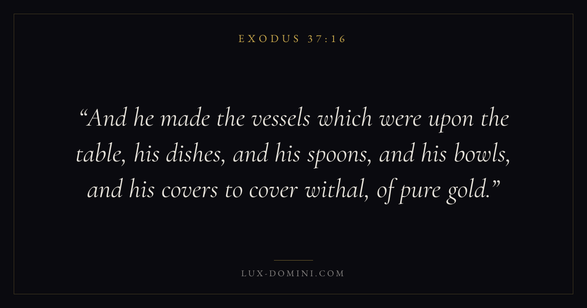 And he made the vessels which were upon the table, his dishes, and his spoons, and his bowls, and his covers to cover withal, of pure gold.