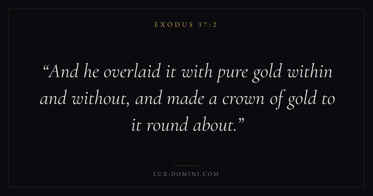 And he overlaid it with pure gold within and without, and made a crown of gold to it round about.