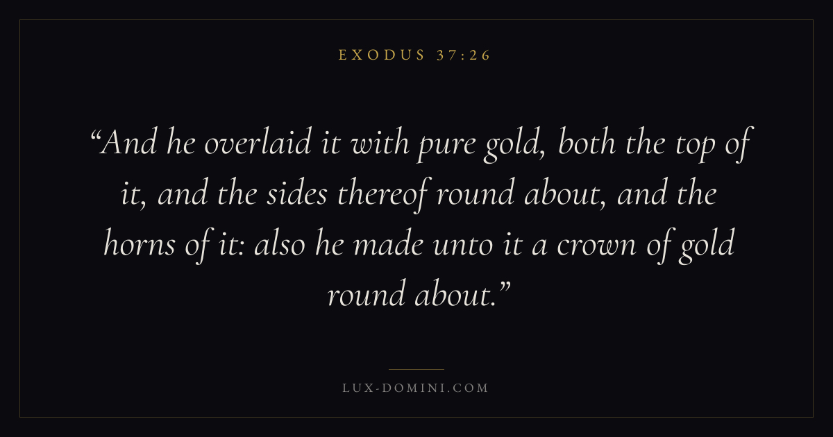 And he overlaid it with pure gold, both the top of it, and the sides thereof round about, and the horns of it: also he made unto it a crown of gold round about.