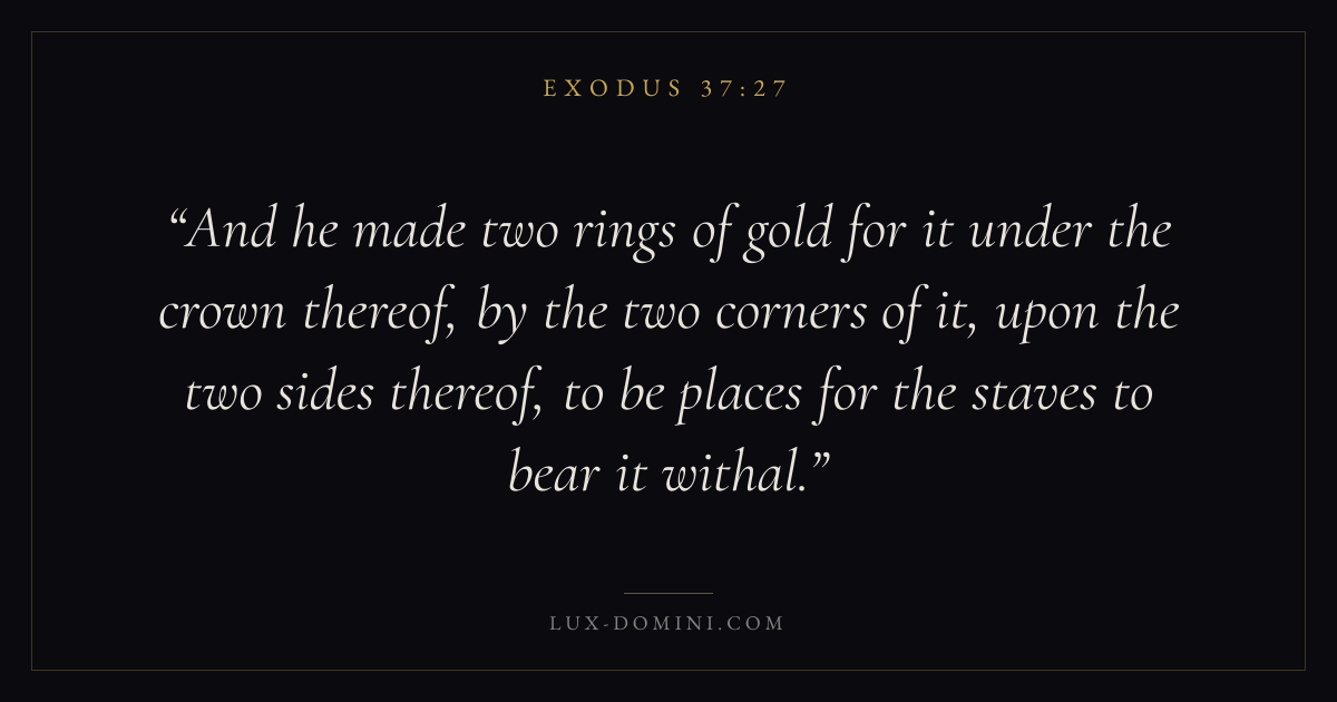 And he made two rings of gold for it under the crown thereof, by the two corners of it, upon the two sides thereof, to be places for the staves to bear it withal.