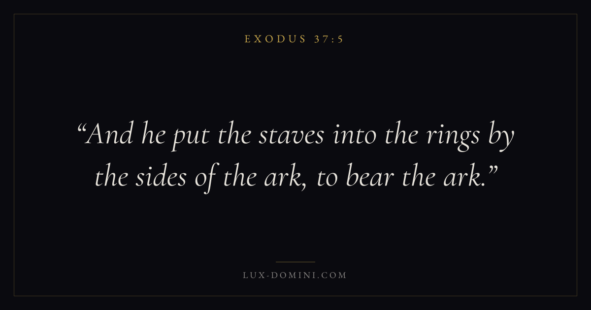 And he put the staves into the rings by the sides of the ark, to bear the ark.
