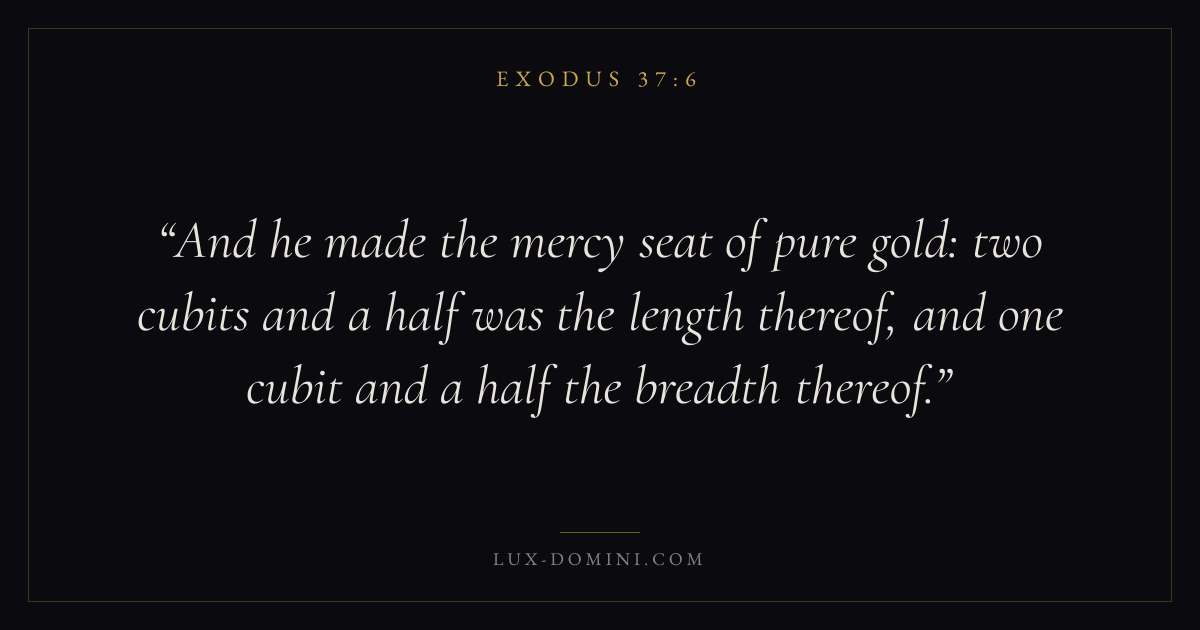 And he made the mercy seat of pure gold: two cubits and a half was the length thereof, and one cubit and a half the breadth thereof.