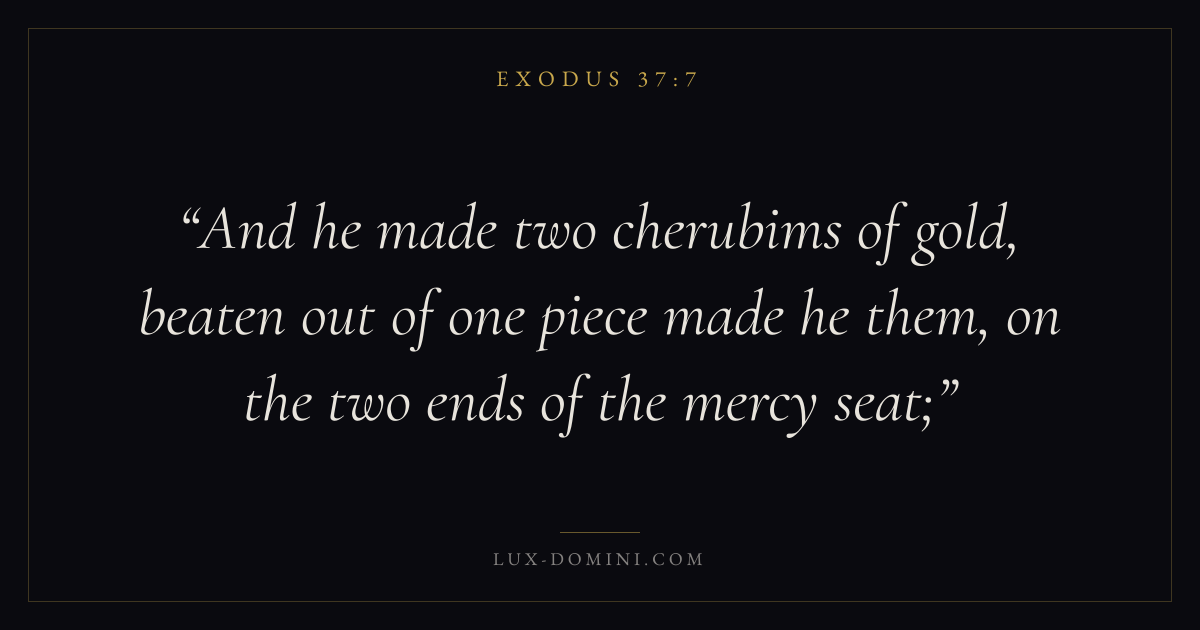 And he made two cherubims of gold, beaten out of one piece made he them, on the two ends of the mercy seat;