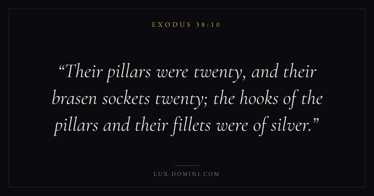 Their pillars were twenty, and their brasen sockets twenty; the hooks of the pillars and their fillets were of silver.