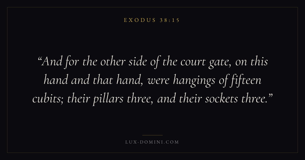 And for the other side of the court gate, on this hand and that hand, were hangings of fifteen cubits; their pillars three, and their sockets three.