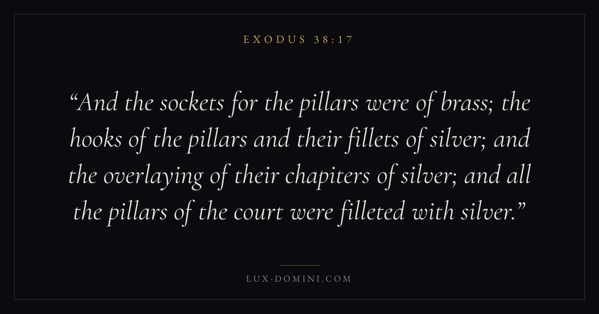 And the sockets for the pillars were of brass; the hooks of the pillars and their fillets of silver; and the overlaying of their chapiters of silver; and all the pillars of the court were filleted with silver.