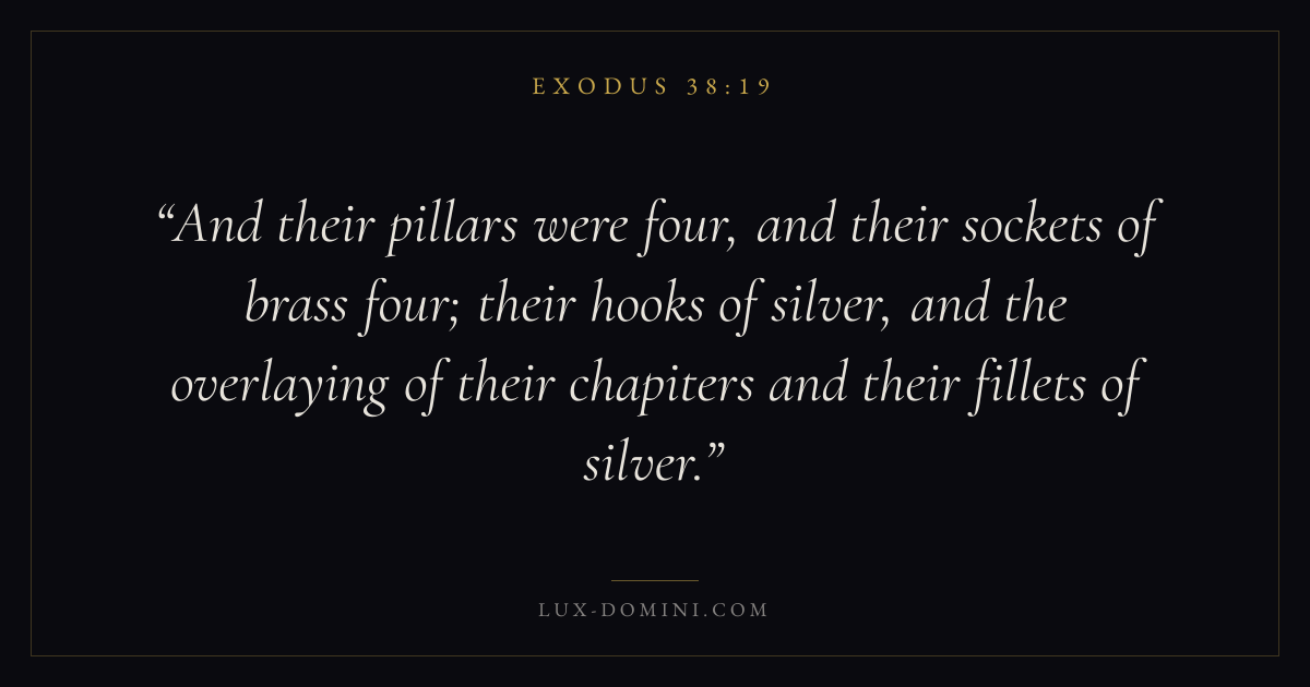 And their pillars were four, and their sockets of brass four; their hooks of silver, and the overlaying of their chapiters and their fillets of silver.