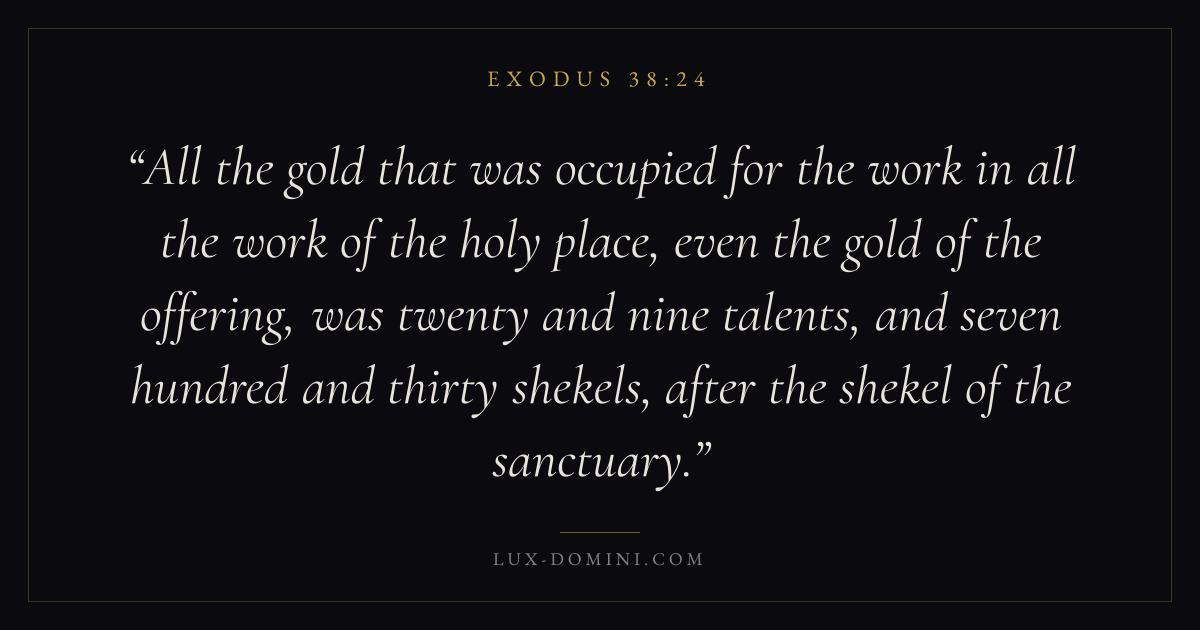All the gold that was occupied for the work in all the work of the holy place, even the gold of the offering, was twenty and nine talents, and seven hundred and thirty shekels, after the shekel of the sanctuary.