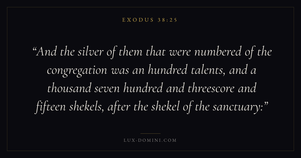 And the silver of them that were numbered of the congregation was an hundred talents, and a thousand seven hundred and threescore and fifteen shekels, after the shekel of the sanctuary: