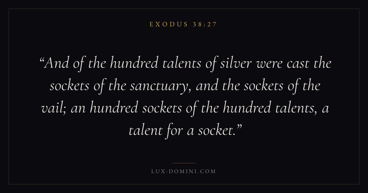 And of the hundred talents of silver were cast the sockets of the sanctuary, and the sockets of the vail; an hundred sockets of the hundred talents, a talent for a socket.