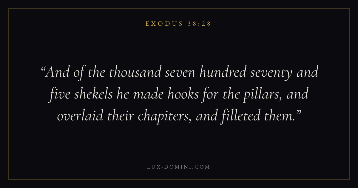 And of the thousand seven hundred seventy and five shekels he made hooks for the pillars, and overlaid their chapiters, and filleted them.