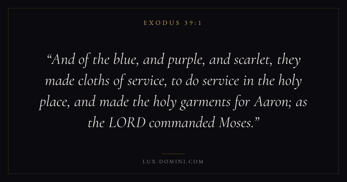 And of the blue, and purple, and scarlet, they made cloths of service, to do service in the holy place, and made the holy garments for Aaron; as the LORD commanded Moses.