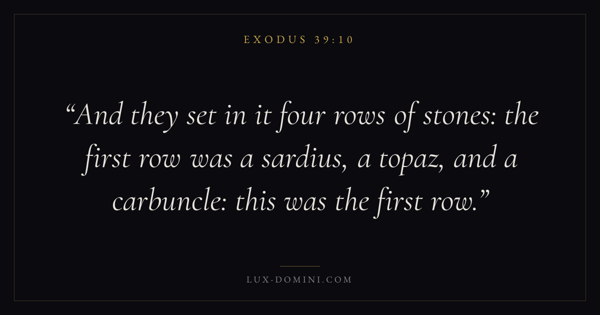 And they set in it four rows of stones: the first row was a sardius, a topaz, and a carbuncle: this was the first row.