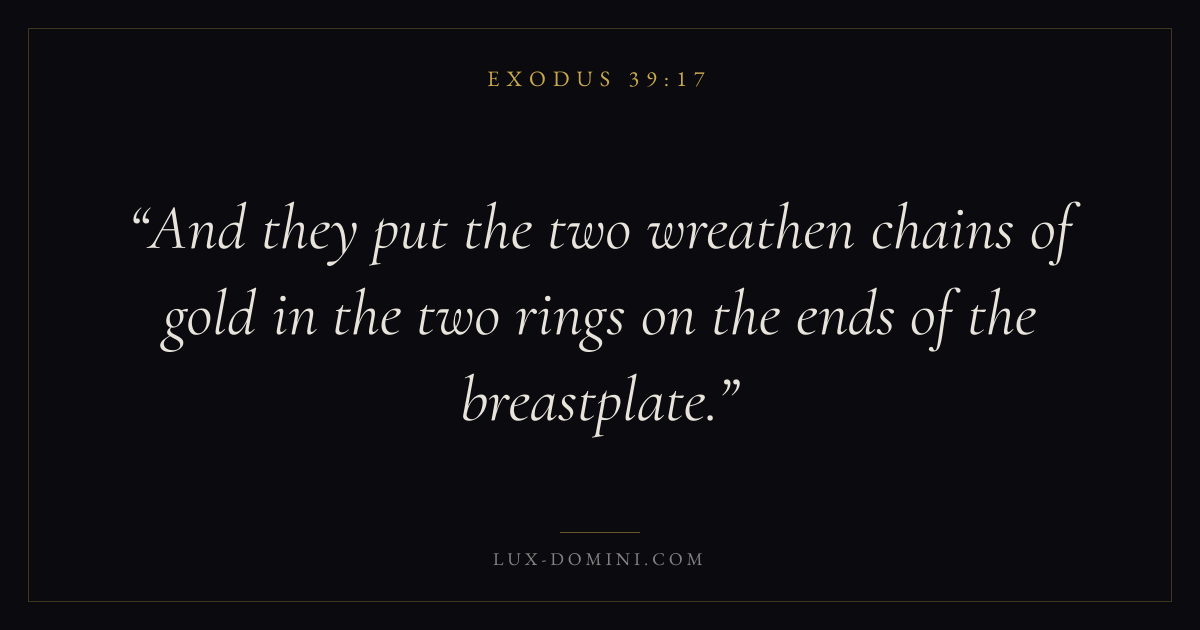 And they put the two wreathen chains of gold in the two rings on the ends of the breastplate.