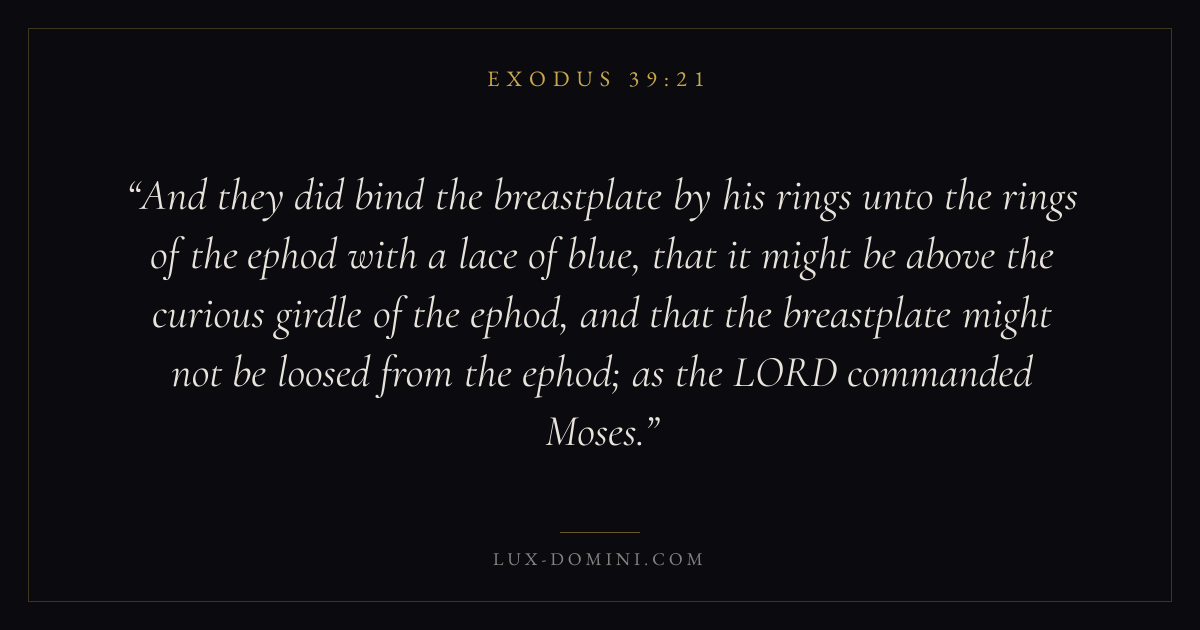 And they did bind the breastplate by his rings unto the rings of the ephod with a lace of blue, that it might be above the curious girdle of the ephod, and that the breastplate might not be loosed from the ephod; as the LORD commanded Moses.