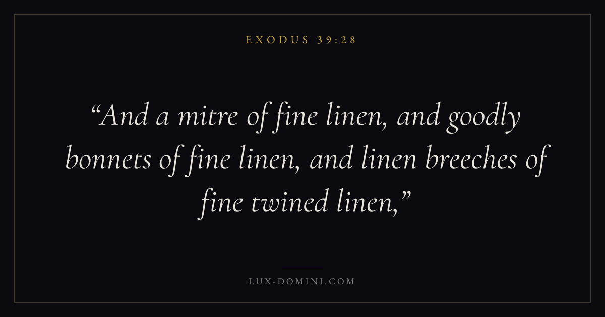 And a mitre of fine linen, and goodly bonnets of fine linen, and linen breeches of fine twined linen,