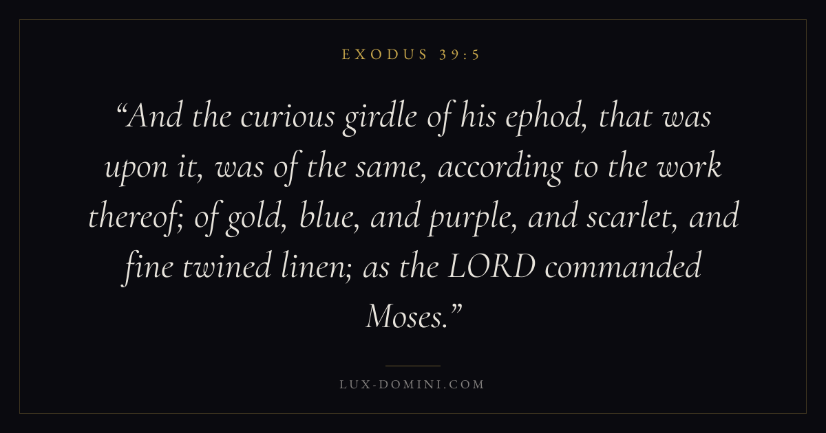 And the curious girdle of his ephod, that was upon it, was of the same, according to the work thereof; of gold, blue, and purple, and scarlet, and fine twined linen; as the LORD commanded Moses.