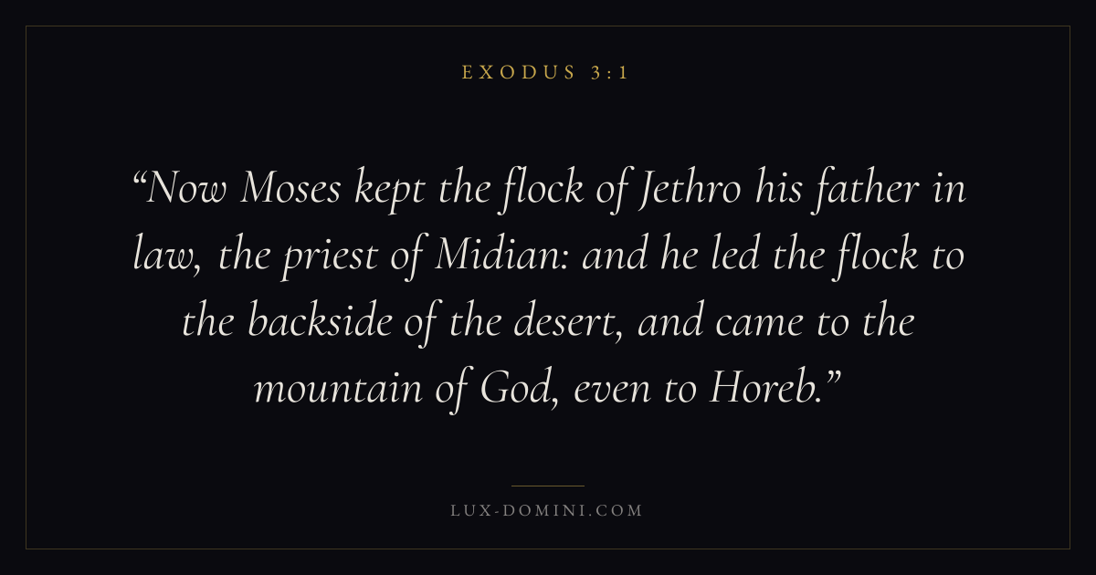 Now Moses kept the flock of Jethro his father in law, the priest of Midian: and he led the flock to the backside of the desert, and came to the mountain of God, even to Horeb.