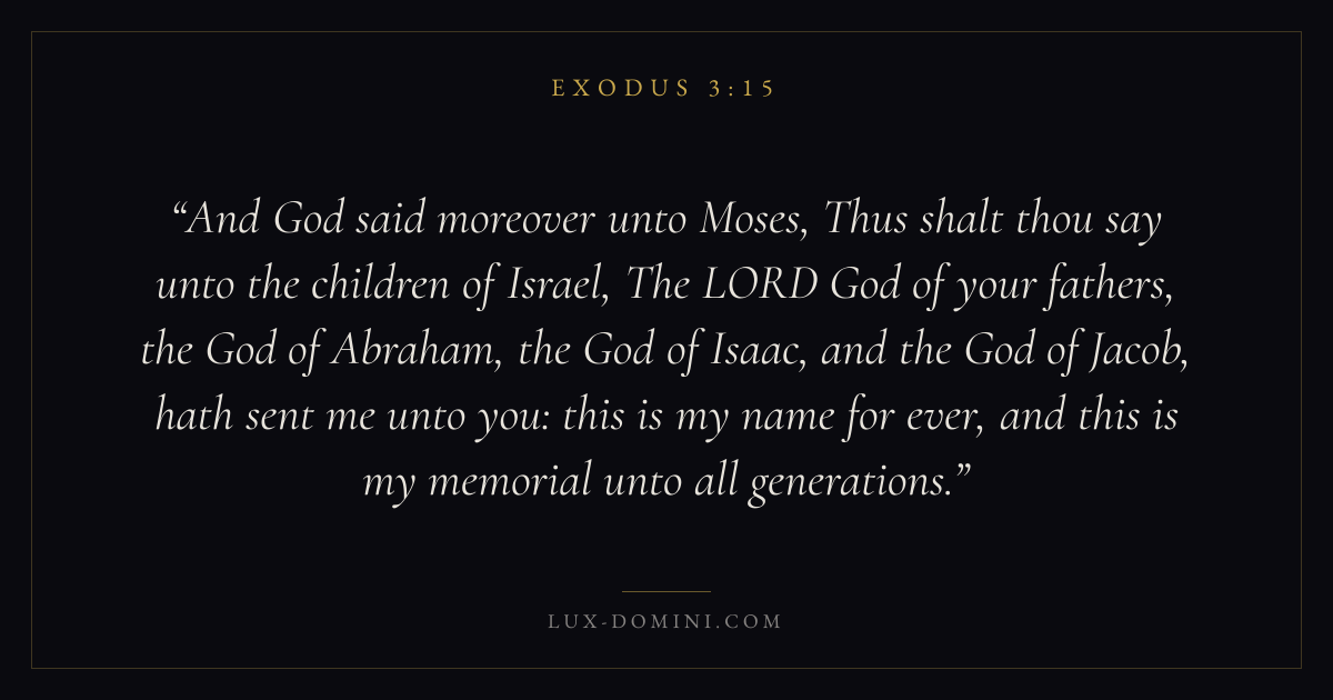 And God said moreover unto Moses, Thus shalt thou say unto the children of Israel, The LORD God of your fathers, the God of Abraham, the God of Isaac, and the God of Jacob, hath sent me unto you: this is my name for ever, and this is my memorial unto all generations.