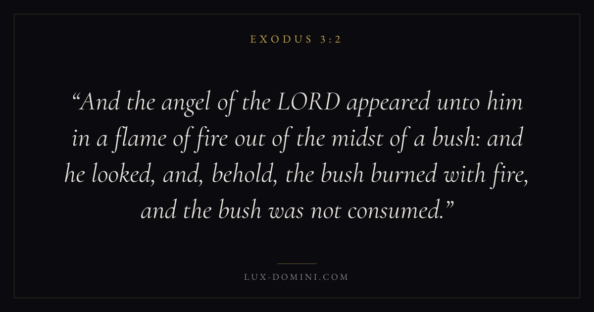 And the angel of the LORD appeared unto him in a flame of fire out of the midst of a bush: and he looked, and, behold, the bush burned with fire, and the bush was not consumed.