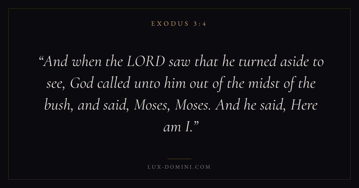 And when the LORD saw that he turned aside to see, God called unto him out of the midst of the bush, and said, Moses, Moses. And he said, Here am I.