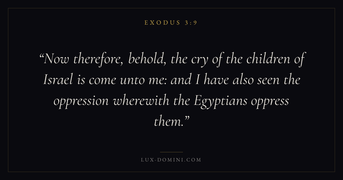 Now therefore, behold, the cry of the children of Israel is come unto me: and I have also seen the oppression wherewith the Egyptians oppress them.