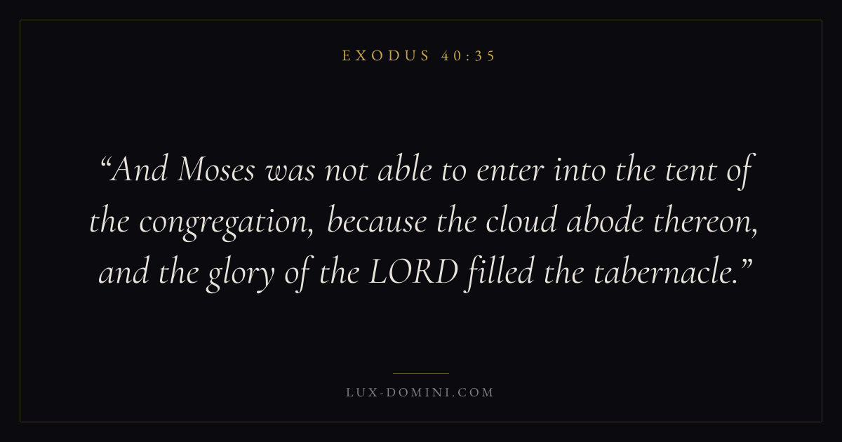 And Moses was not able to enter into the tent of the congregation, because the cloud abode thereon, and the glory of the LORD filled the tabernacle.