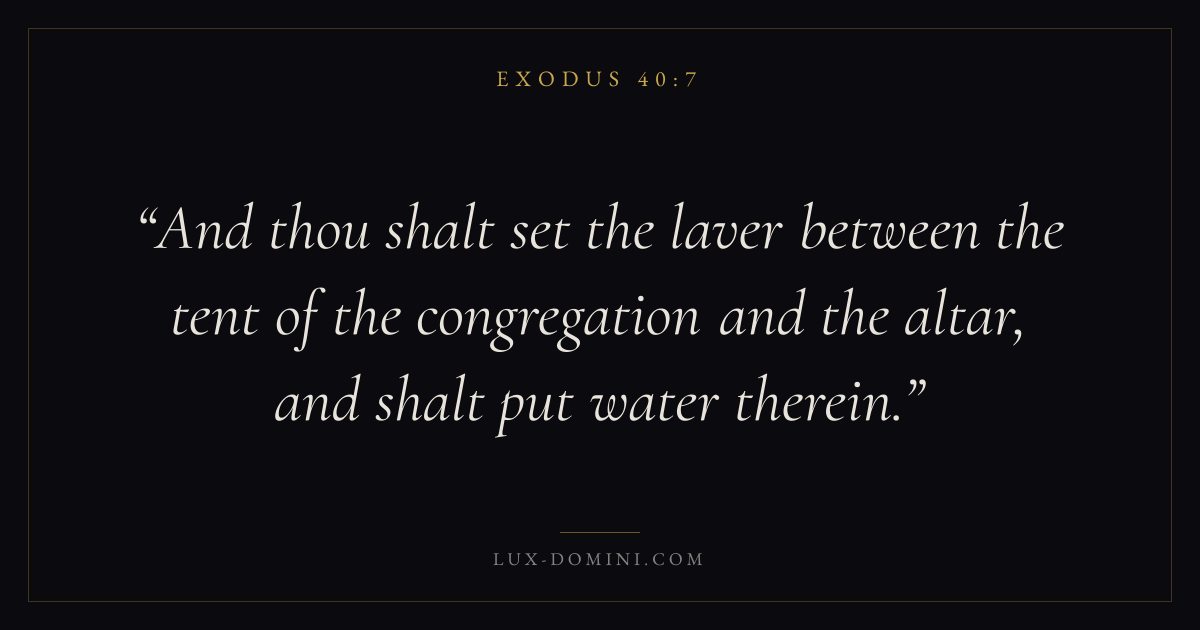 And thou shalt set the laver between the tent of the congregation and the altar, and shalt put water therein.