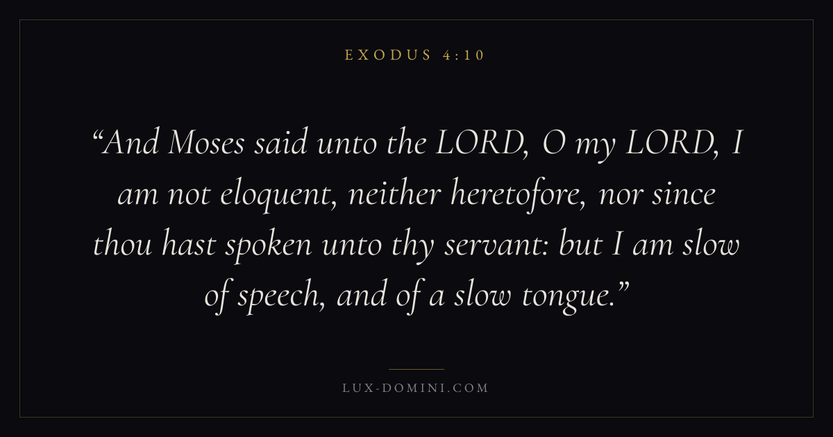 And Moses said unto the LORD, O my LORD, I am not eloquent, neither heretofore, nor since thou hast spoken unto thy servant: but I am slow of speech, and of a slow tongue.