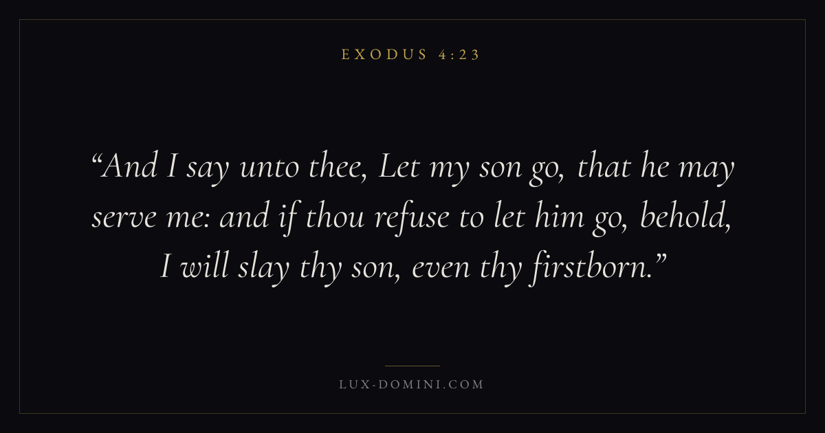 And I say unto thee, Let my son go, that he may serve me: and if thou refuse to let him go, behold, I will slay thy son, even thy firstborn.