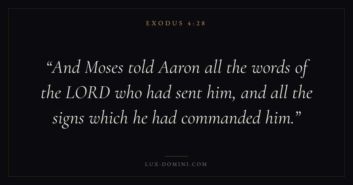 And Moses told Aaron all the words of the LORD who had sent him, and all the signs which he had commanded him.