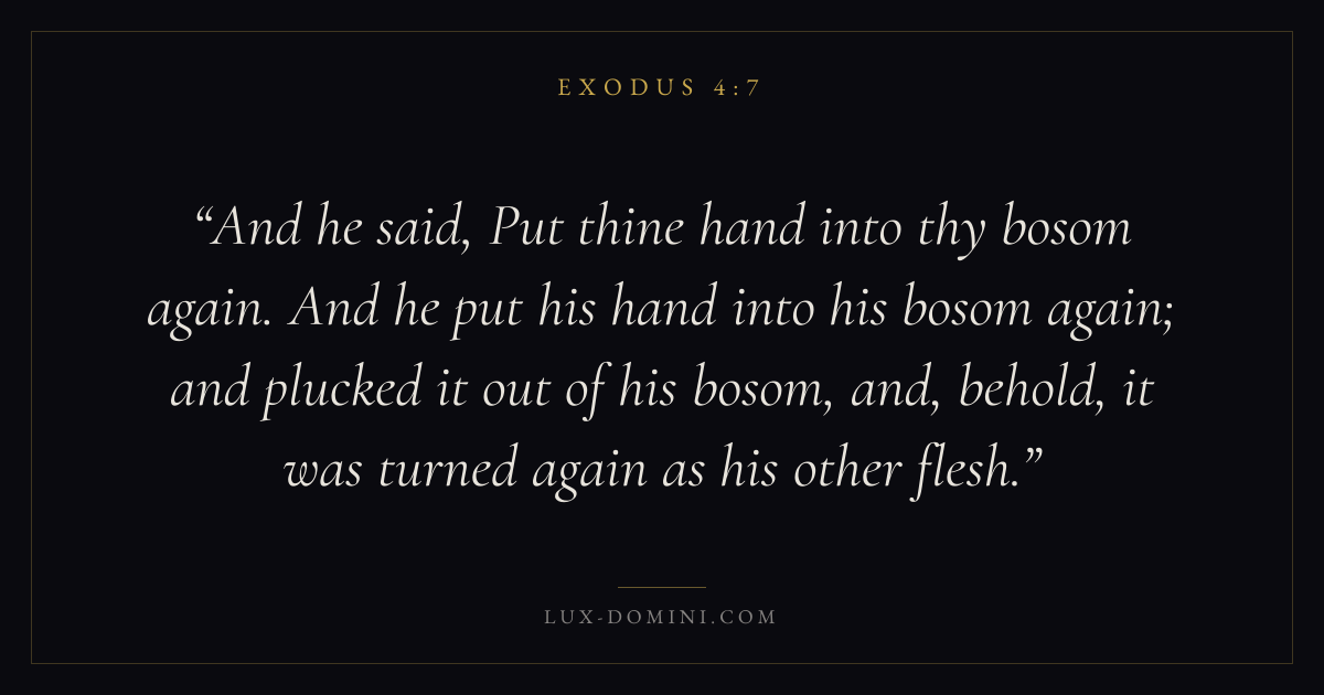 And he said, Put thine hand into thy bosom again. And he put his hand into his bosom again; and plucked it out of his bosom, and, behold, it was turned again as his other flesh.