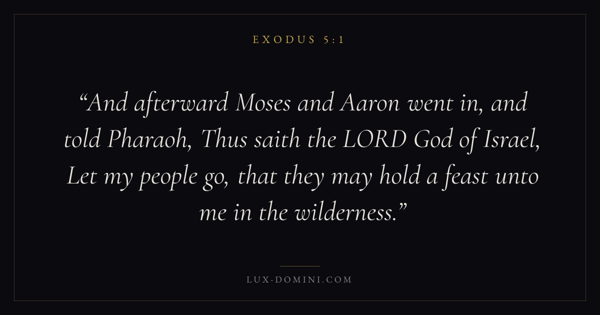 And afterward Moses and Aaron went in, and told Pharaoh, Thus saith the LORD God of Israel, Let my people go, that they may hold a feast unto me in the wilderness.