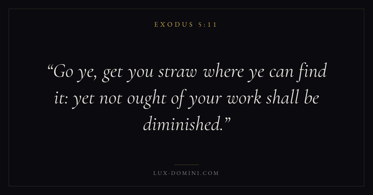 Go ye, get you straw where ye can find it: yet not ought of your work shall be diminished.