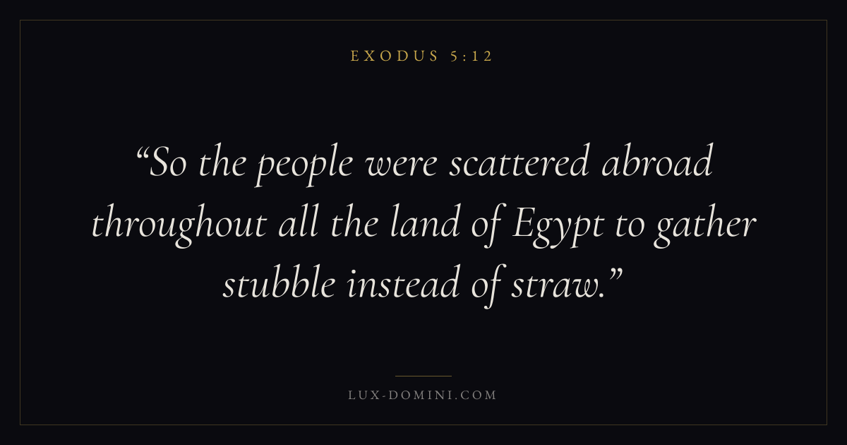 So the people were scattered abroad throughout all the land of Egypt to gather stubble instead of straw.
