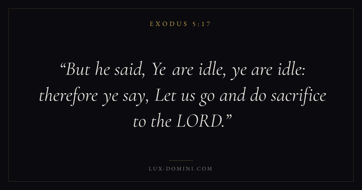 But he said, Ye are idle, ye are idle: therefore ye say, Let us go and do sacrifice to the LORD.