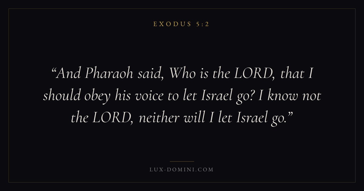 And Pharaoh said, Who is the LORD, that I should obey his voice to let Israel go? I know not the LORD, neither will I let Israel go.