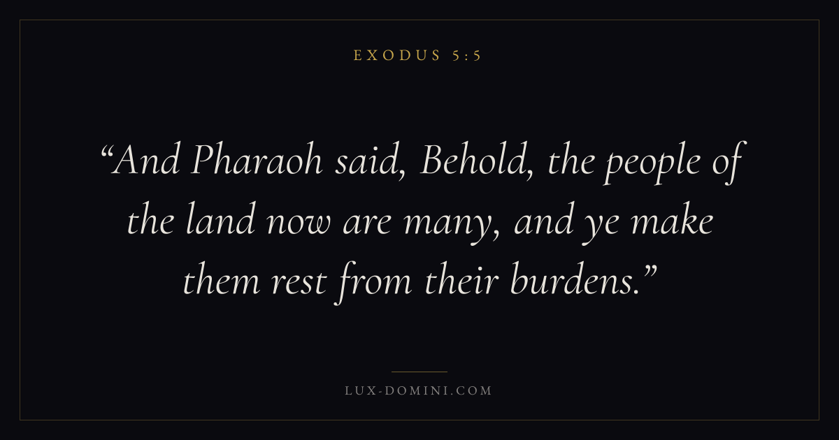And Pharaoh said, Behold, the people of the land now are many, and ye make them rest from their burdens.
