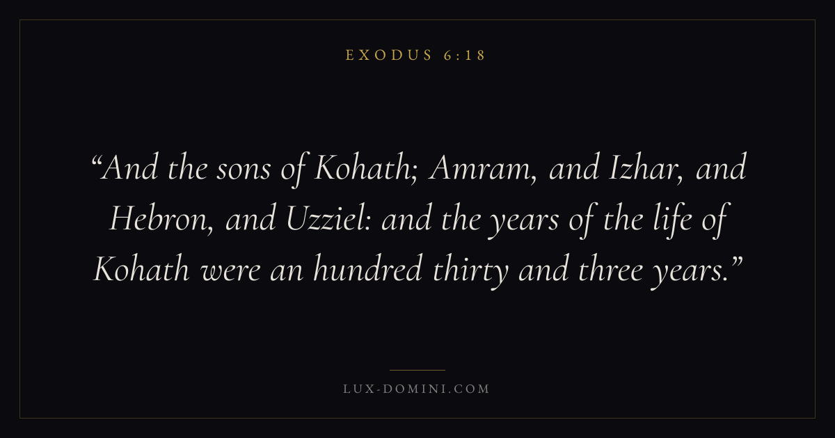 And the sons of Kohath; Amram, and Izhar, and Hebron, and Uzziel: and the years of the life of Kohath were an hundred thirty and three years.