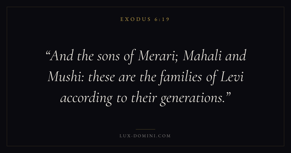 And the sons of Merari; Mahali and Mushi: these are the families of Levi according to their generations.