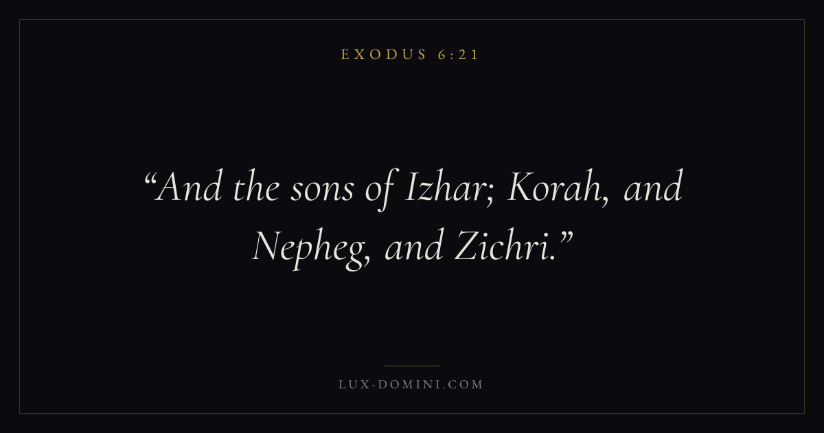 And the sons of Izhar; Korah, and Nepheg, and Zichri.