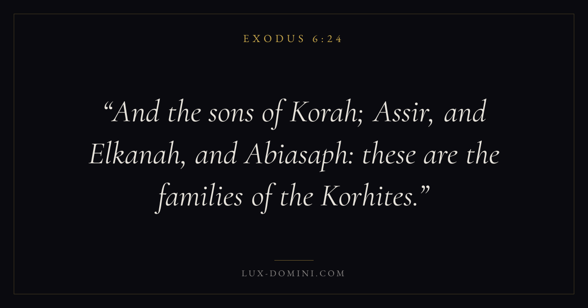 And the sons of Korah; Assir, and Elkanah, and Abiasaph: these are the families of the Korhites.