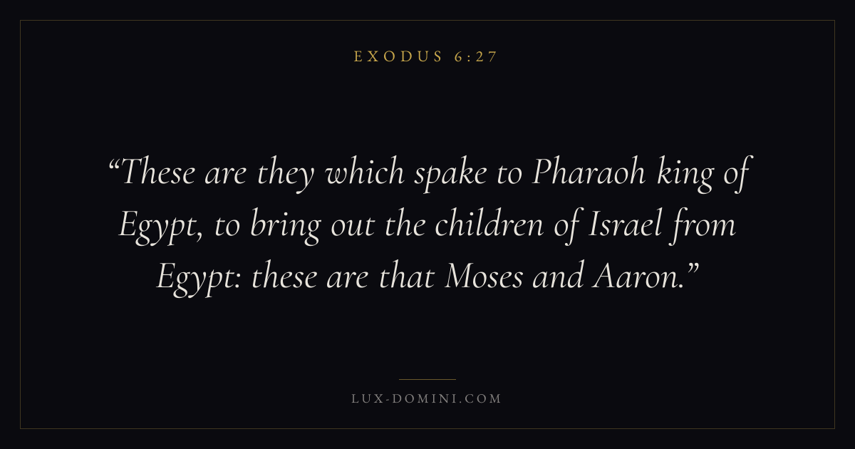 These are they which spake to Pharaoh king of Egypt, to bring out the children of Israel from Egypt: these are that Moses and Aaron.