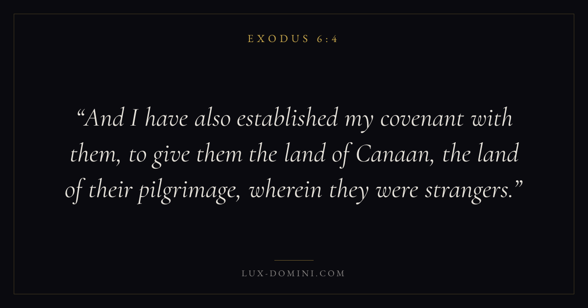 And I have also established my covenant with them, to give them the land of Canaan, the land of their pilgrimage, wherein they were strangers.