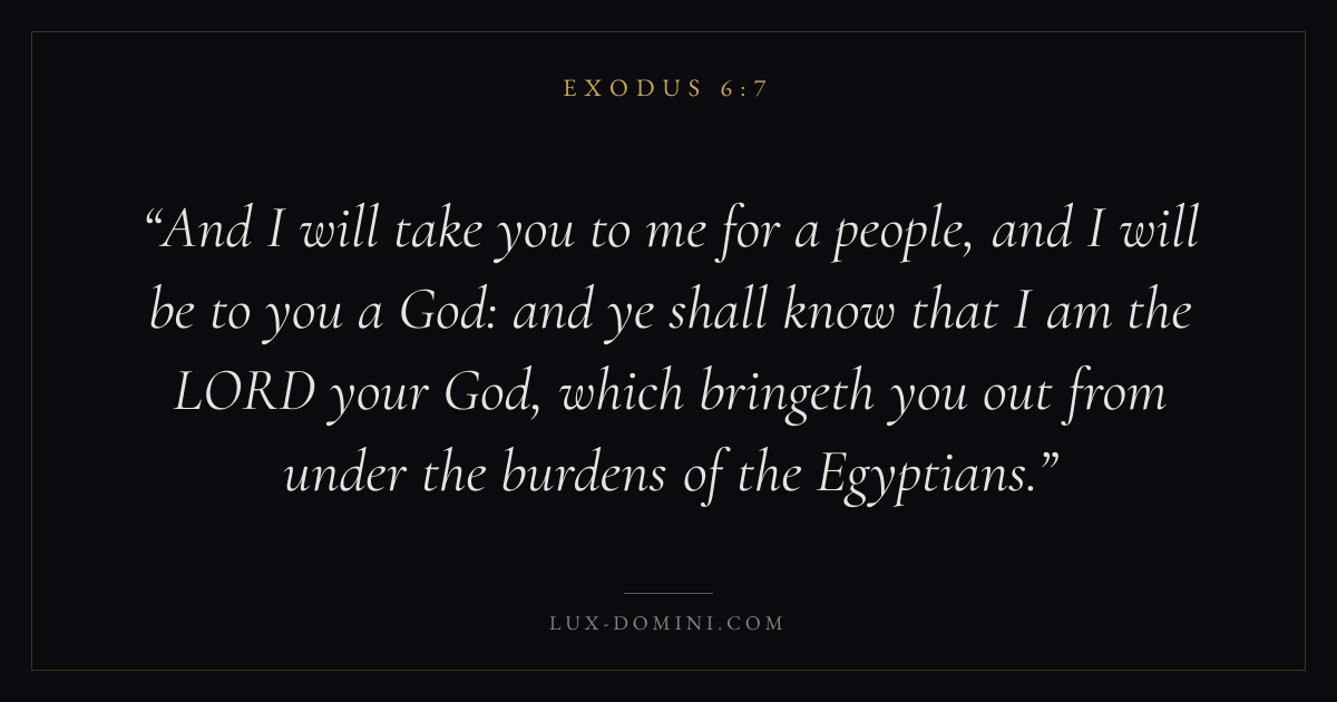 And I will take you to me for a people, and I will be to you a God: and ye shall know that I am the LORD your God, which bringeth you out from under the burdens of the Egyptians.
