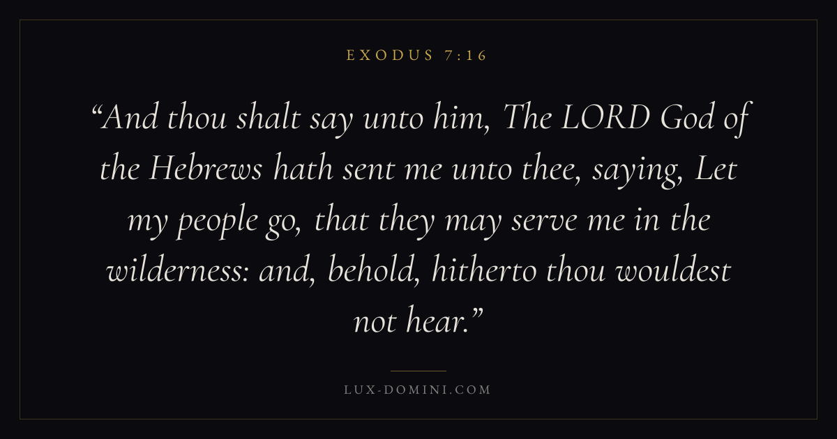 And thou shalt say unto him, The LORD God of the Hebrews hath sent me unto thee, saying, Let my people go, that they may serve me in the wilderness: and, behold, hitherto thou wouldest not hear.