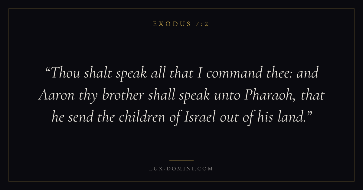 Thou shalt speak all that I command thee: and Aaron thy brother shall speak unto Pharaoh, that he send the children of Israel out of his land.